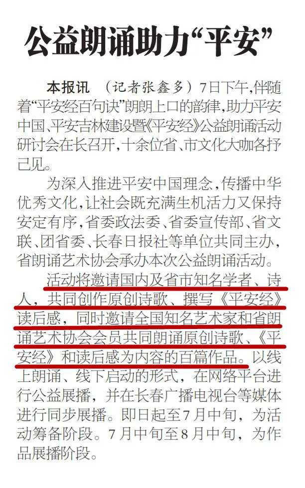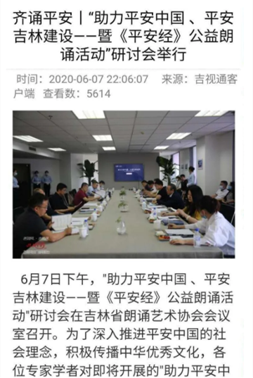 令人瞠目結(jié)舌的是,這竟然還引來了眾多衙門和名流的熱烈追捧,甚至還有官方媒體組織了“《平安經(jīng)》公益朗誦活動”研討會、朗誦會等等。當(dāng)?shù)啬诚到y(tǒng)、部門微信公號還曾刊發(fā)書評,稱贊此書“值得一讀”、“學(xué)者閱讀此書,頓悟平安哲理,商賈閱讀此書,企業(yè)平安無虞,民眾閱讀此書,安享世間太平”。