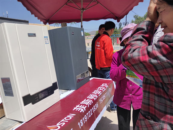 2019年6月3日,正值炎炎夏日,同樣熱火朝天的銷售現(xiàn)場還出現(xiàn)在青海省樂都縣的一個村莊內(nèi)。受國家煤改氣的影響,國家推行農(nóng)村煤改清潔能源的政策,大力推進燃氣壁掛爐供暖,燃氣壁掛爐以其能同步兼顧生活熱水與采暖系統(tǒng)的一機二用的亮點,收到很多消費者的青睞。許多農(nóng)村地區(qū)紛紛開始了解和購買燃氣壁掛爐以響應(yīng)國家綠色環(huán)保的號召。