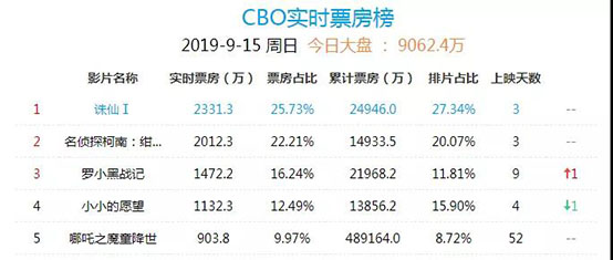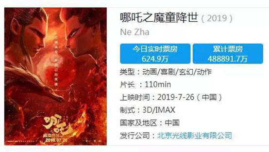 《哪吒》于7月26日在中國內(nèi)地上映,隨后接連破紀錄:上映1小時29分,票房破億;原本上映一個月的,也申請通過了密鑰延期,上映時間延長到9月26日。截至9月15日,上映已52天的《哪吒》,總票房直逼49億元,成為國內(nèi)第四部超越“四十億”的影片、位列中國總票房第二名,也是其中唯一一部動畫電影。