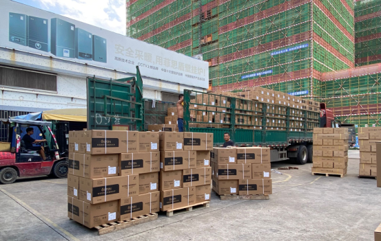 現(xiàn)場(chǎng)一件件貨物整齊劃一的排列在一旁等待裝車(chē),工作人員忙碌的身影來(lái)來(lái)往往,像是菲思盾在困境中負(fù)重前行,力爭(zhēng)求勝的縮影,亦是對(duì)我們?nèi)找岳^夜、全力以赴促生產(chǎn)的鼓勵(lì)和肯定。