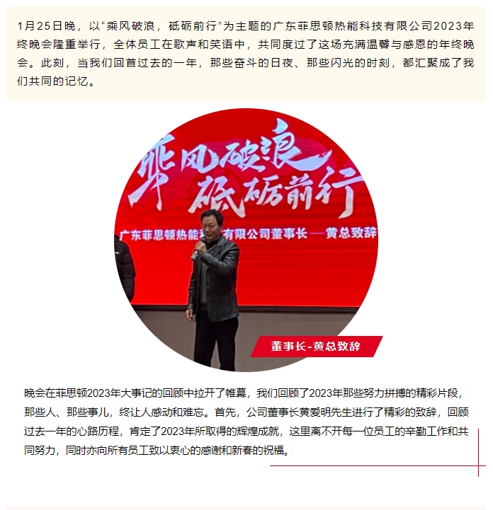乘風(fēng)破浪,砥礪前行|熱烈慶祝廣東菲思頓熱能科技有限公司2023年終晚會(huì)圓滿成功