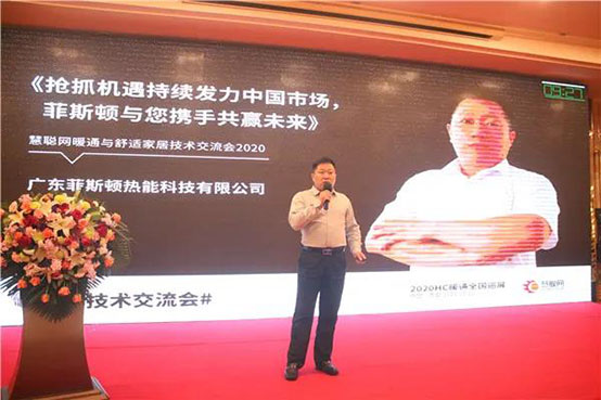 2020年8月23日,由慧聰供熱采暖網(wǎng)、慧聰空調(diào)制冷網(wǎng)、慧聰熱泵網(wǎng)、慧聰新風(fēng)網(wǎng)、慧聰空凈網(wǎng)、51廠批網(wǎng)共同主辦、廣東羽順熱能技術(shù)設(shè)備有限公司提供衣服贊助的“慧聰網(wǎng)2020年度暖通與舒適家居全國巡回產(chǎn)品技術(shù)交流會暨暖通工程輔材采購對接會”在西安隆重舉行?;顒蝇F(xiàn)場,廣東菲思盾熱能科技有限公司渠道部總監(jiān)王前程先生為我們做《搶抓機(jī)遇持續(xù)發(fā)力中國市場,菲思盾與您攜手共贏未來》的主題分享。