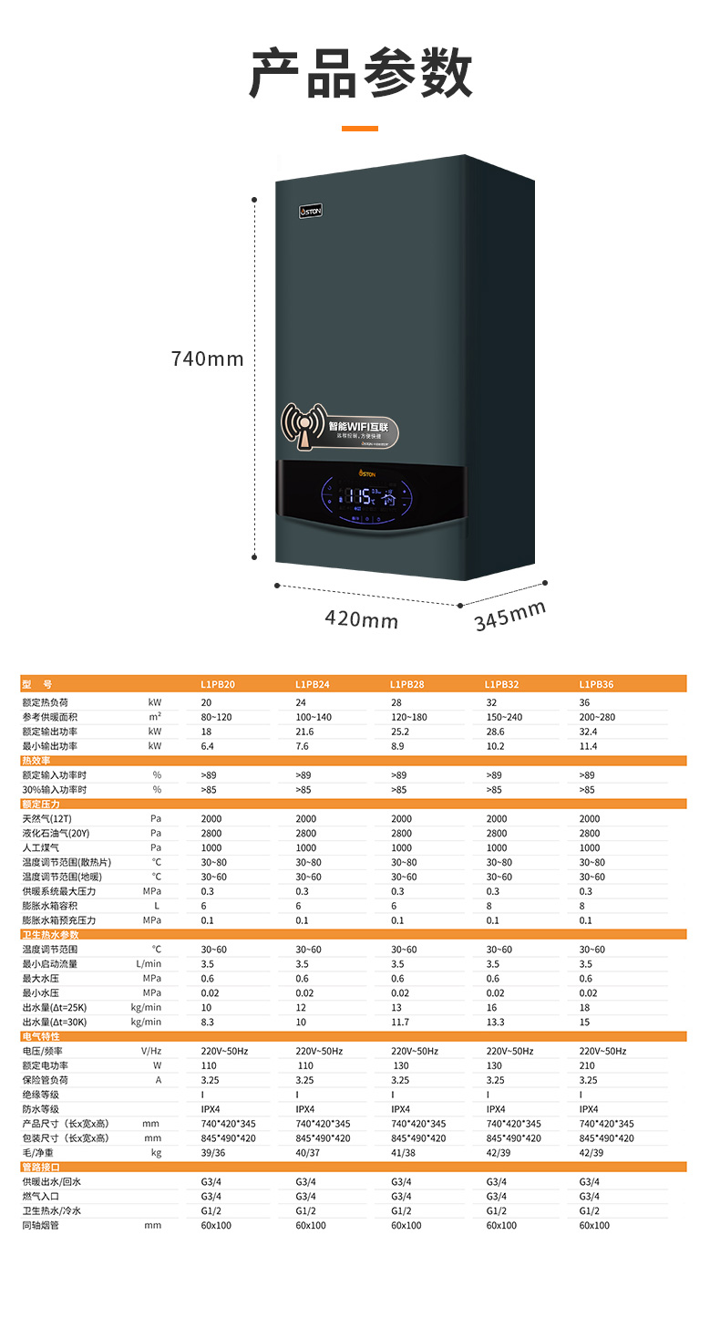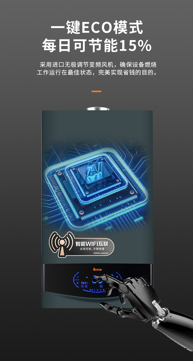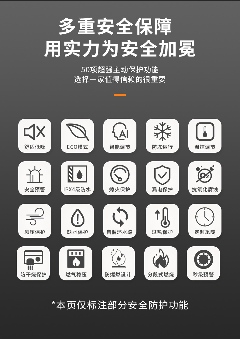 分段式燃燒,熱負(fù)荷調(diào)節(jié)比1:5,徹底解決夏季水溫過高燙傷安全問題。