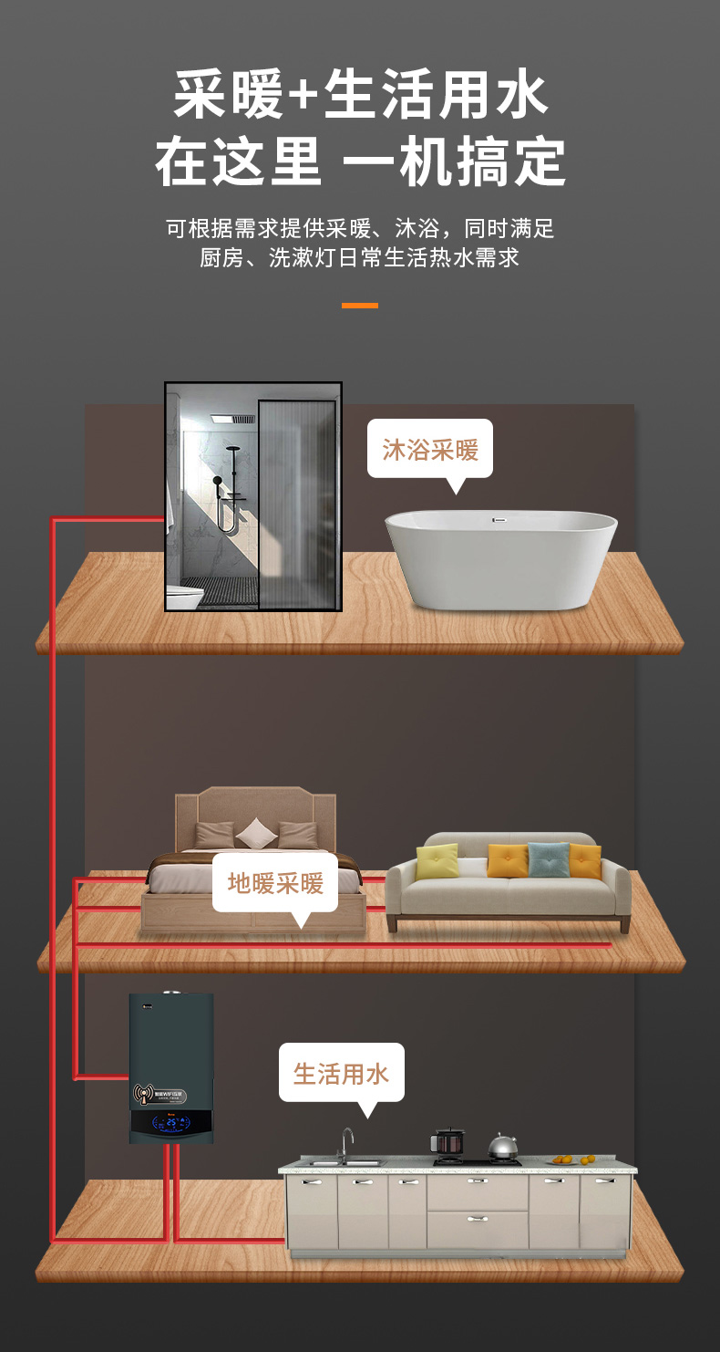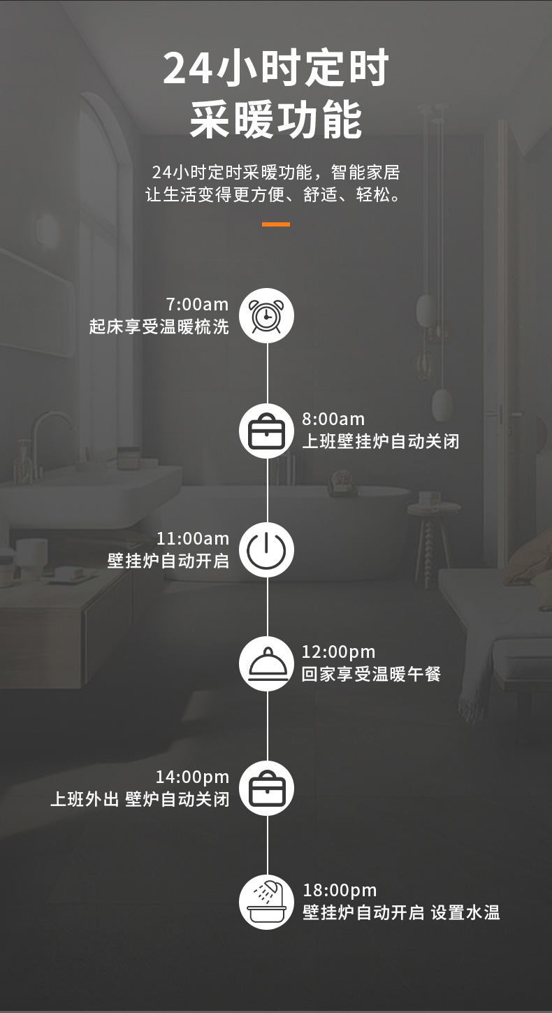 24小時定時采暖功能,生活更節(jié)能、更方便、更舒適。