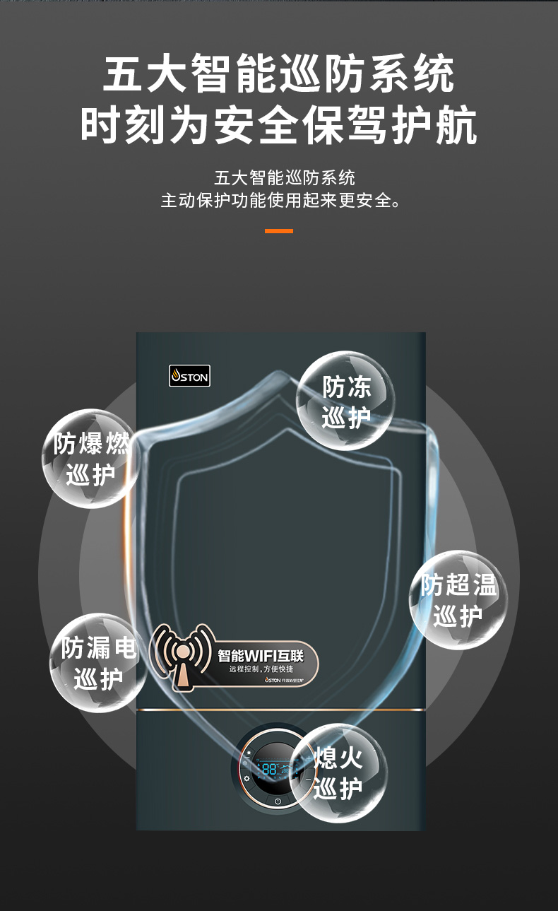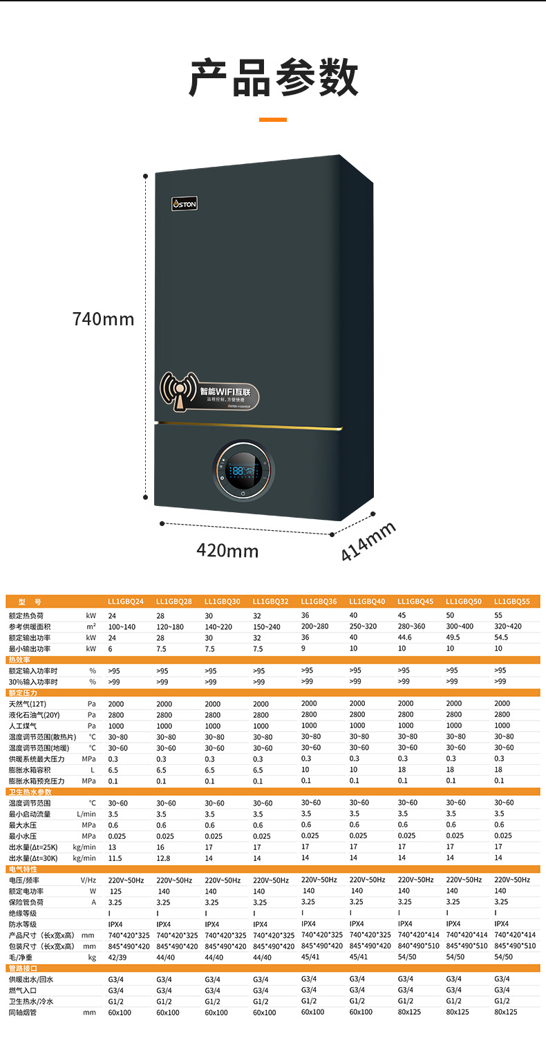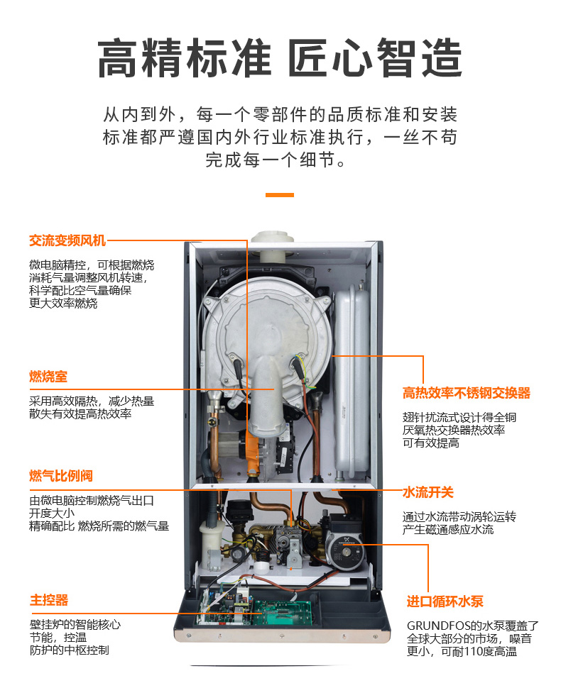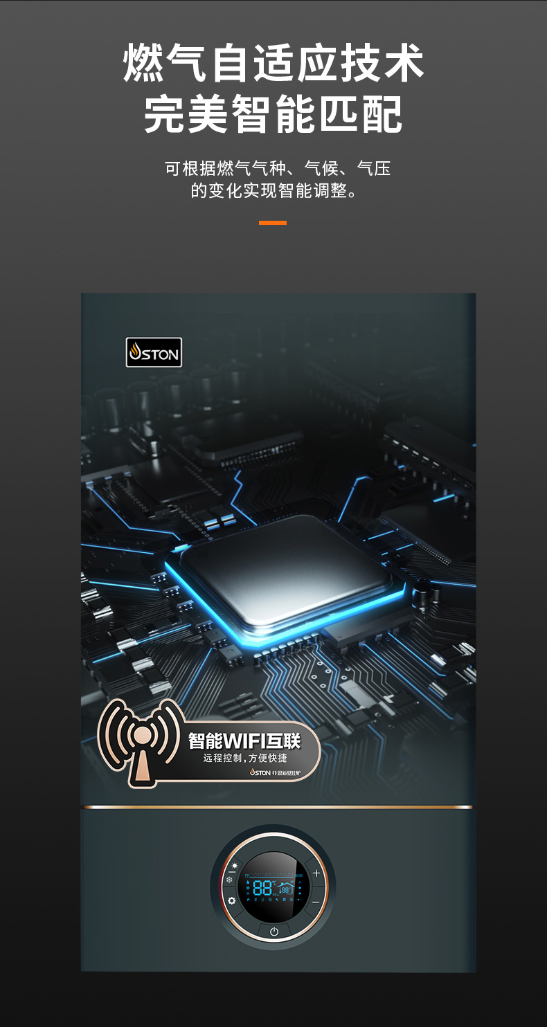 AI智能芯片集成變頻控制燃?xì)忸A(yù)混系統(tǒng)、燃燒系統(tǒng)、冷凝系統(tǒng)、燃?xì)馀浔?,使燃燒更充分?/font>