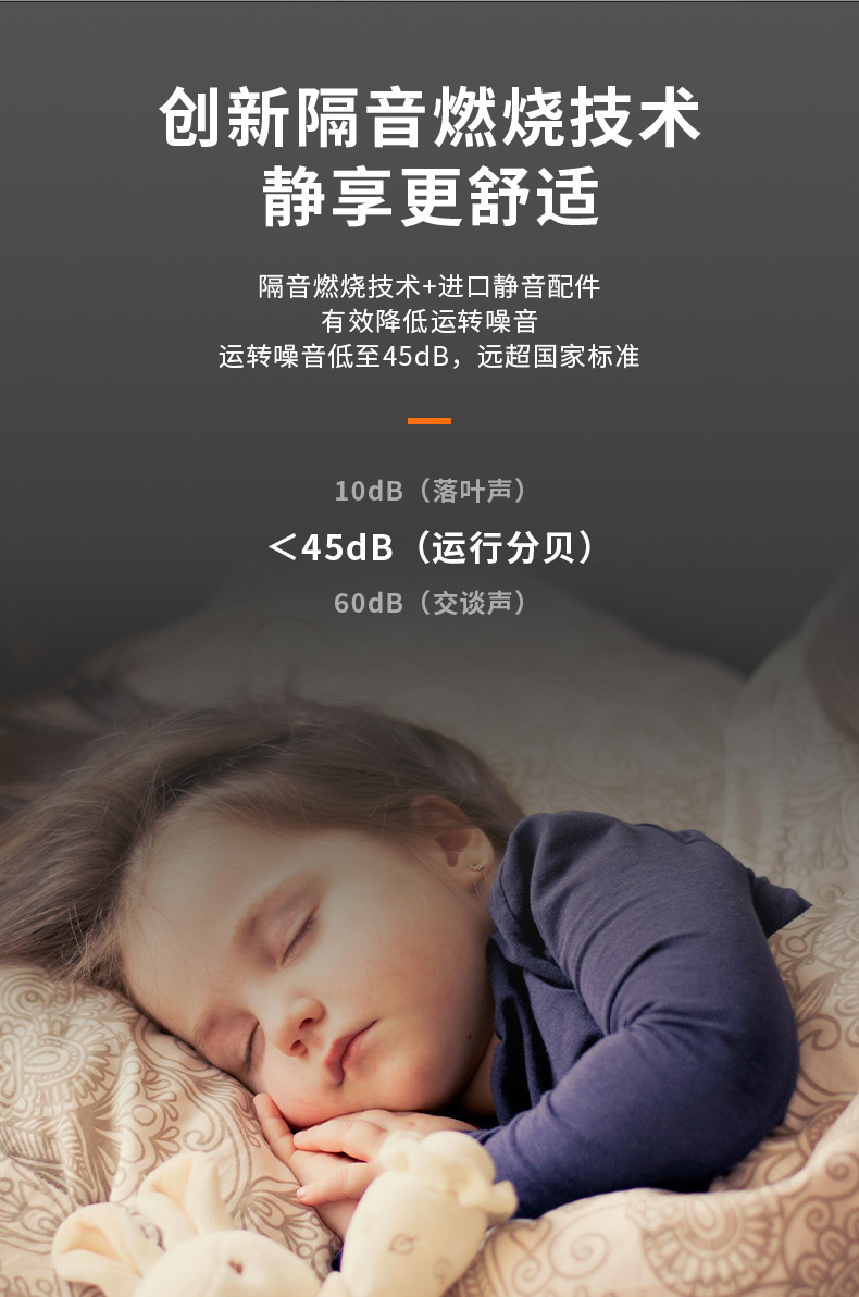 全預(yù)混密閉式隔音燃燒設(shè)計(jì),整機(jī)噪聲低至45dB